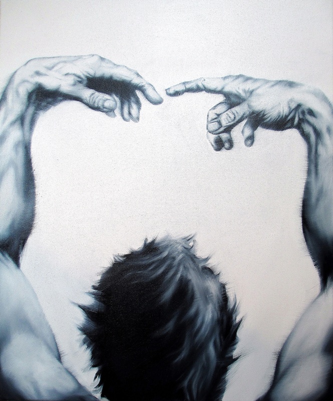 Im Griff 24 x 30 cm Öl, Acryl auf Leinwand